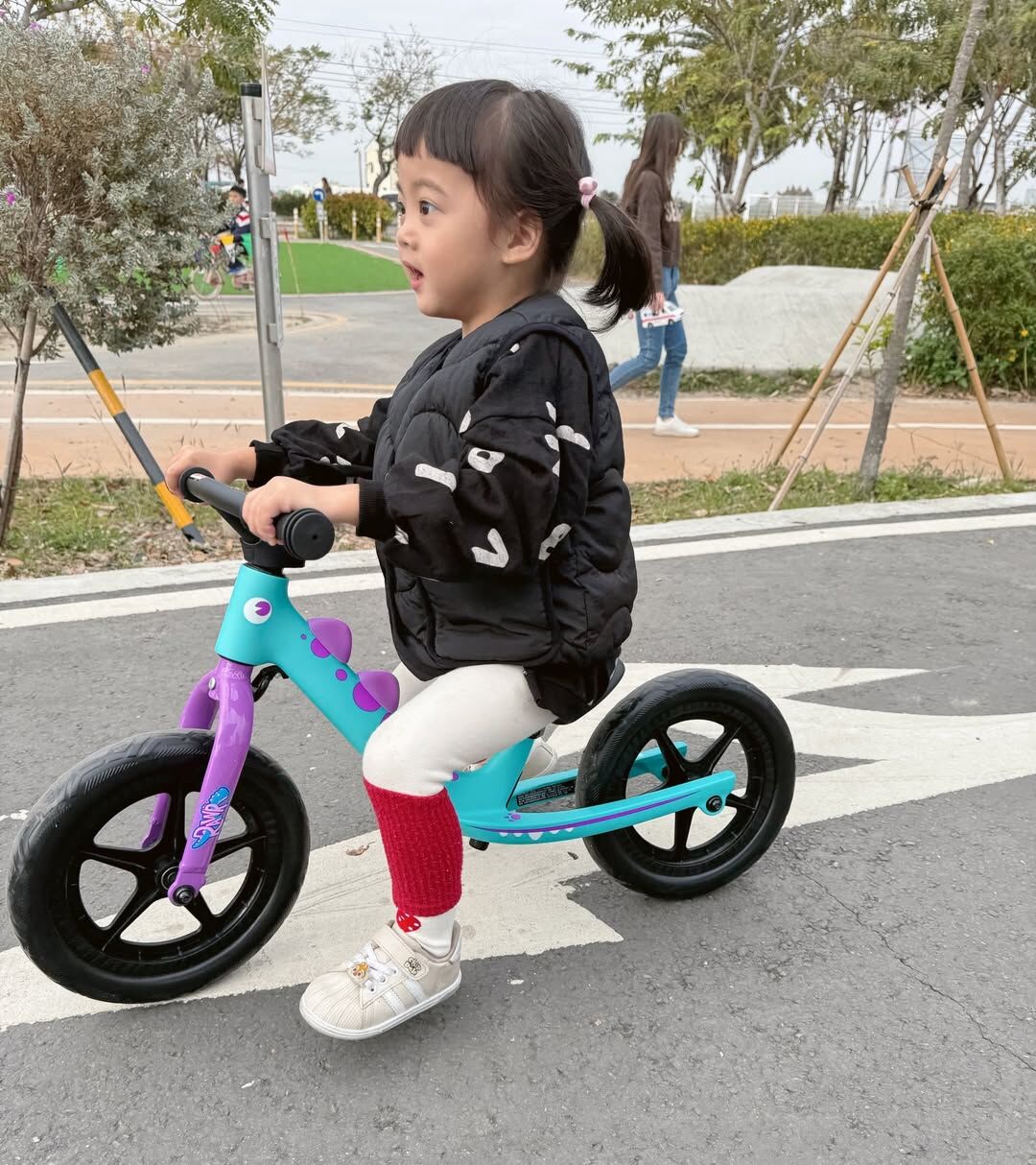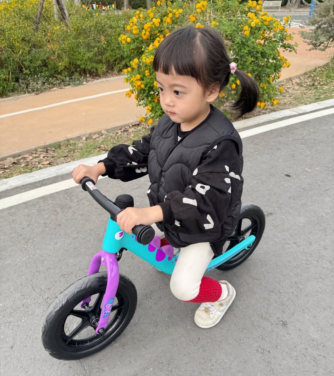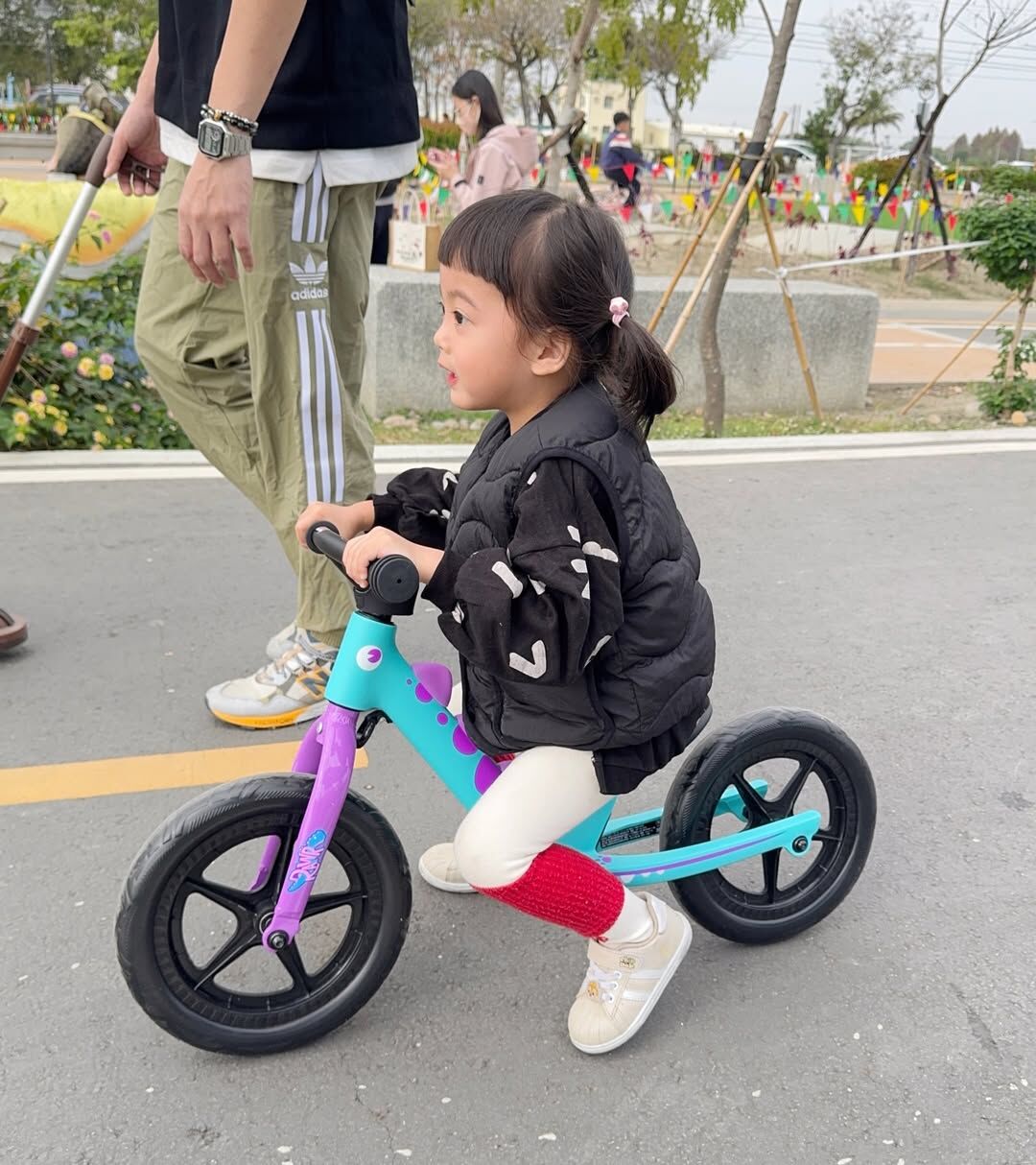 糖寶自從第一次開箱摔倒後一直很害怕抗拒,在這幾個月的反覆練習跟鼓勵,糖寶終於不用我扶著她自己可以慢慢滑,慢慢找平衡,那一刻真的會覺得~啊!我的糖寶真的在長大了。