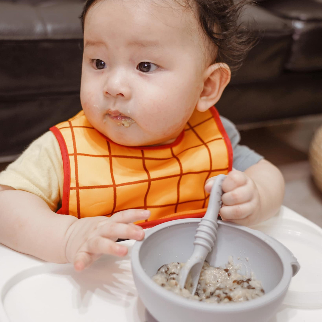 第一次用到Bumkins的餐碗和湯匙,果然名不虛傳,附的湯匙柔軟不傷寶貝牙齦,讓寶貝用餐更開心啦!