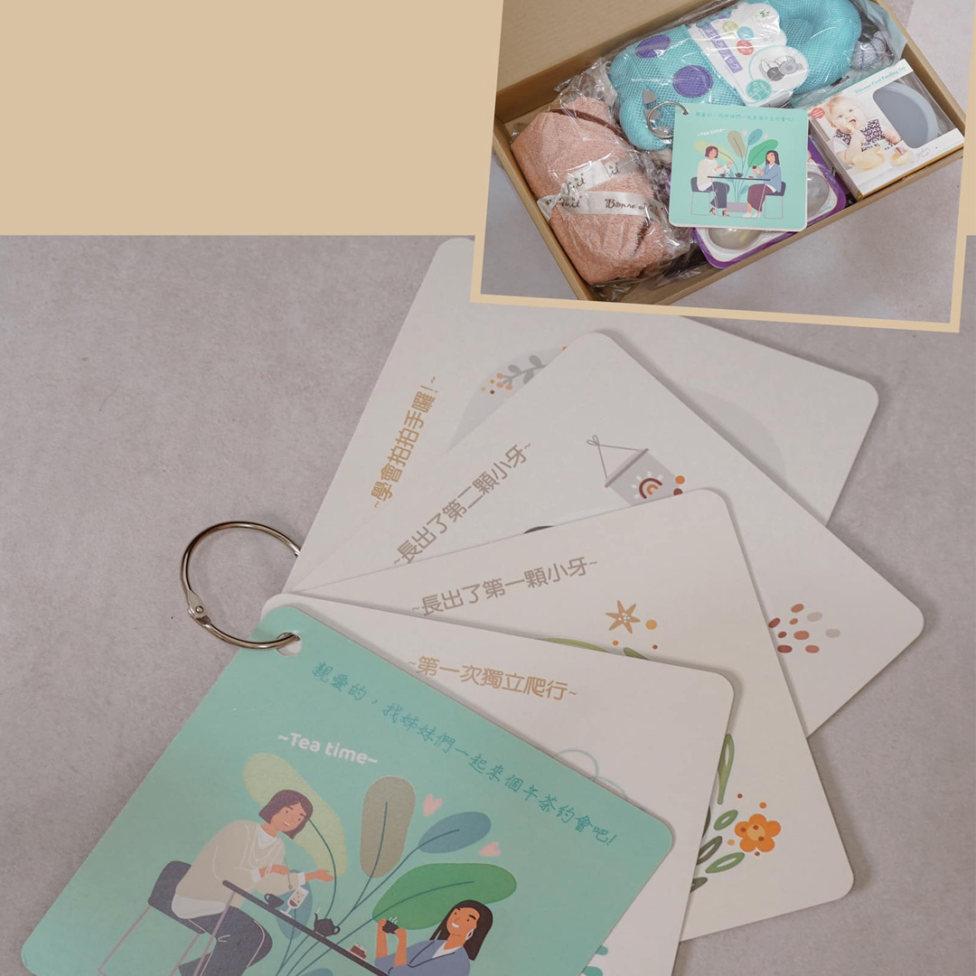 每個育兒箱除了當期育兒好物之外,還有育兒指南、里程碑紀錄,可以紀錄寶寶的第一次,