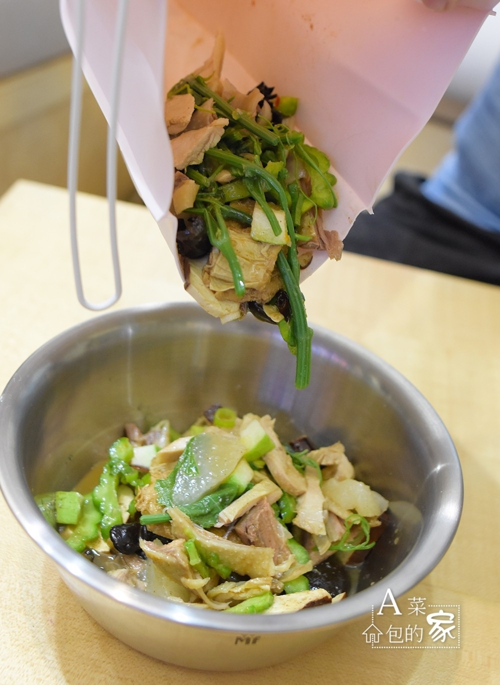 課後想買個鹽水雞當晚餐,請老闆不要用塑膠袋,直接幫我把食物裝進隨手袋裡,輕鬆帶回家。