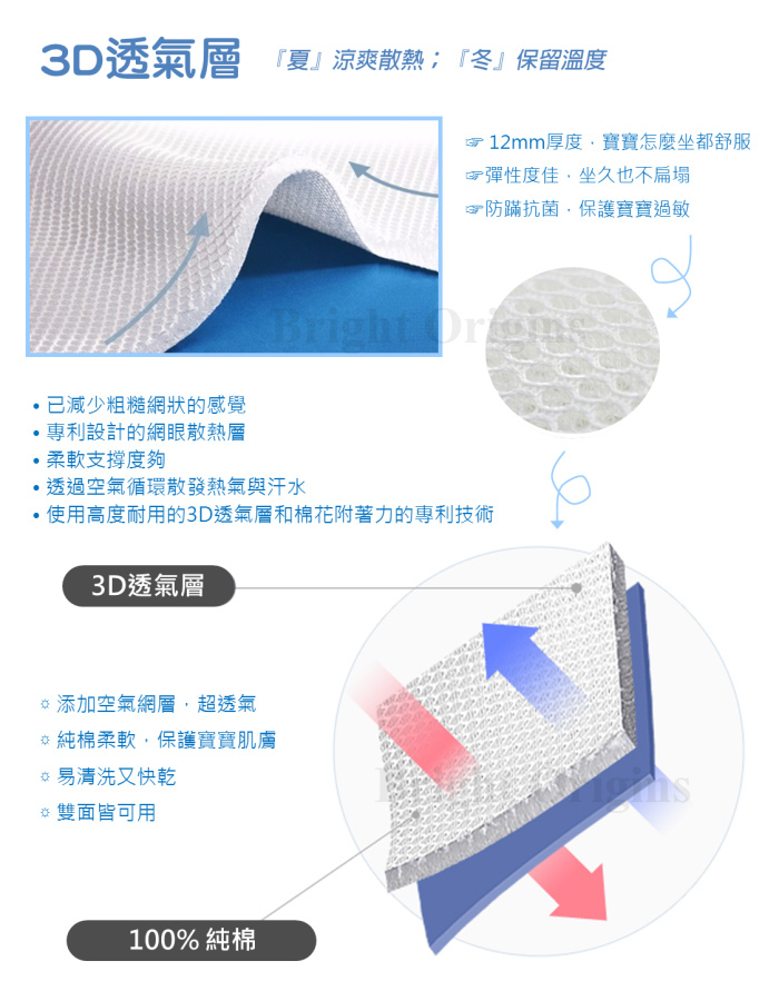 ●3D立體透氣層Air mash,12mm獨家專利厚度
