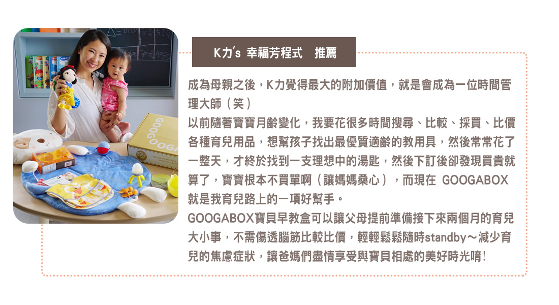 GOOGABOX幫妳更新育兒黑科技,給妳最新的育兒時尚,不再怕脫節。