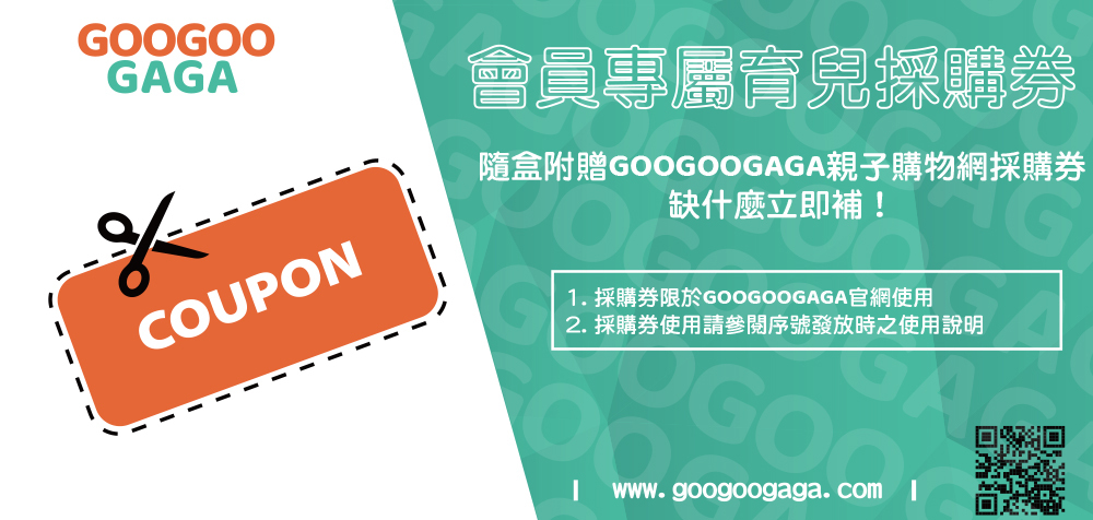 在輕鬆育兒的同時,隨著寶寶的需求可能發現額外的育兒用品需求,使用GOOGOOGAGA親子購物網的育兒採購券,輕鬆把想要的東西帶回家!