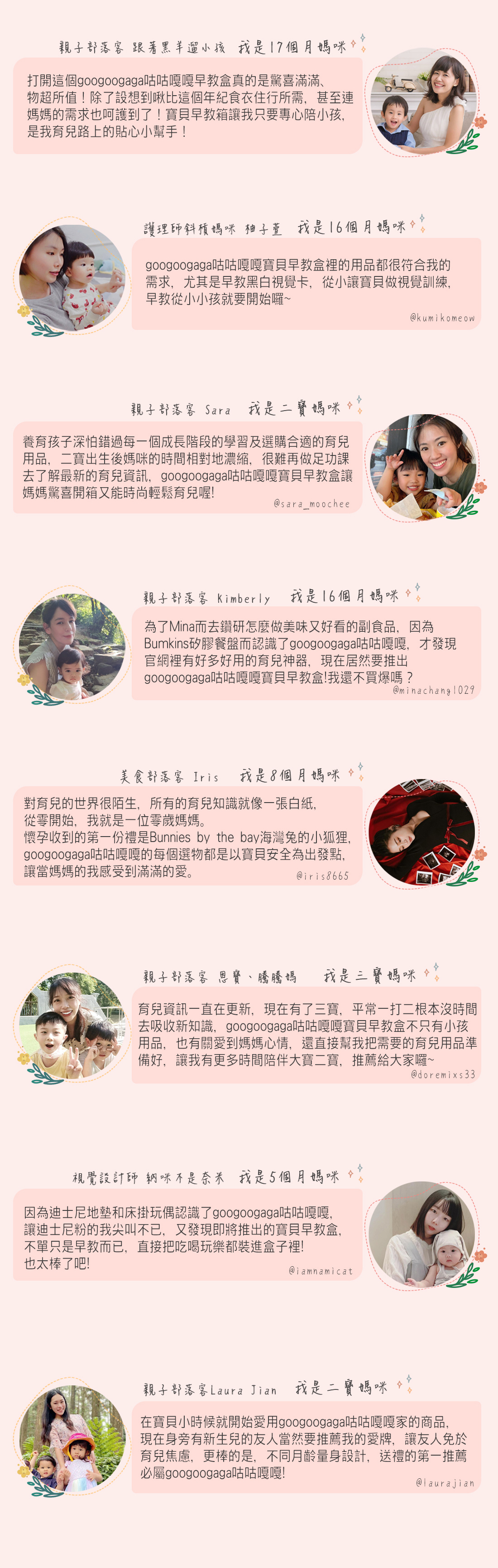 GOOGABOX用心挑選每個階段的寶寶必需品,我們如何挑、爸媽該如何使用、寶寶這個階段會產生什麼樣的成長與變化,都會詳細的在當期的GOOGABOX階段育兒指南裡說明唷!(育兒指南的介紹請繼續往下看看【實用錦囊2】)#
